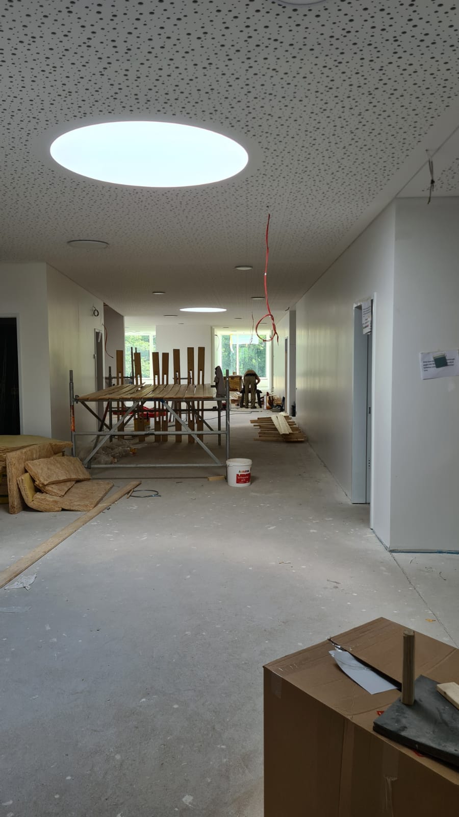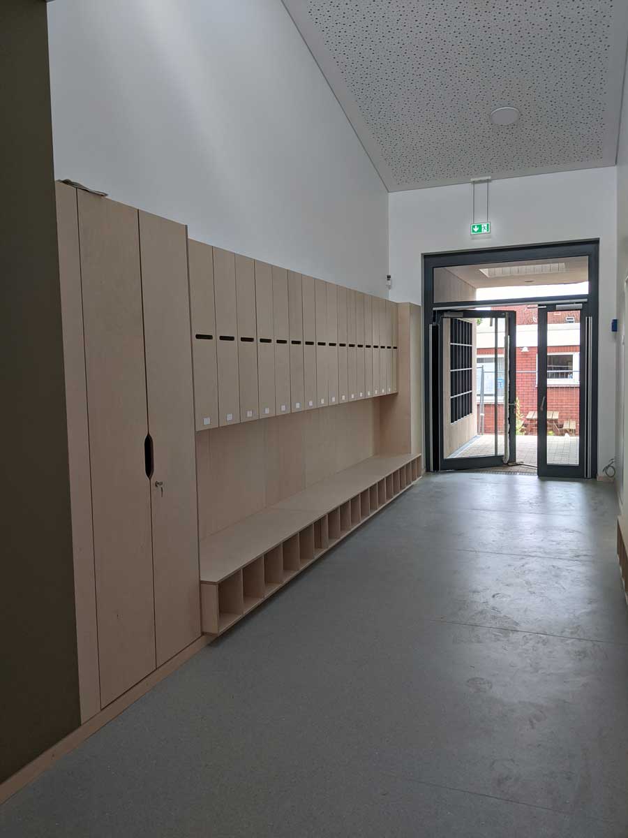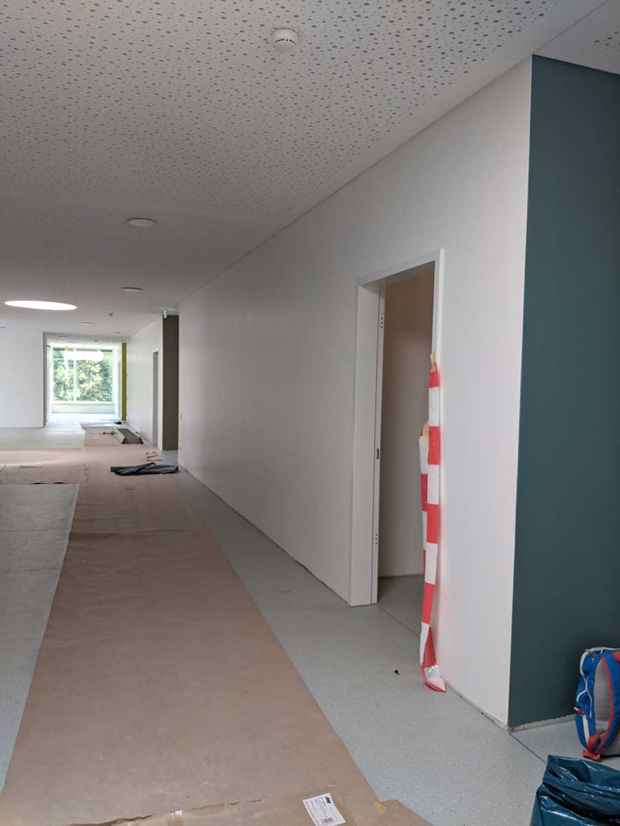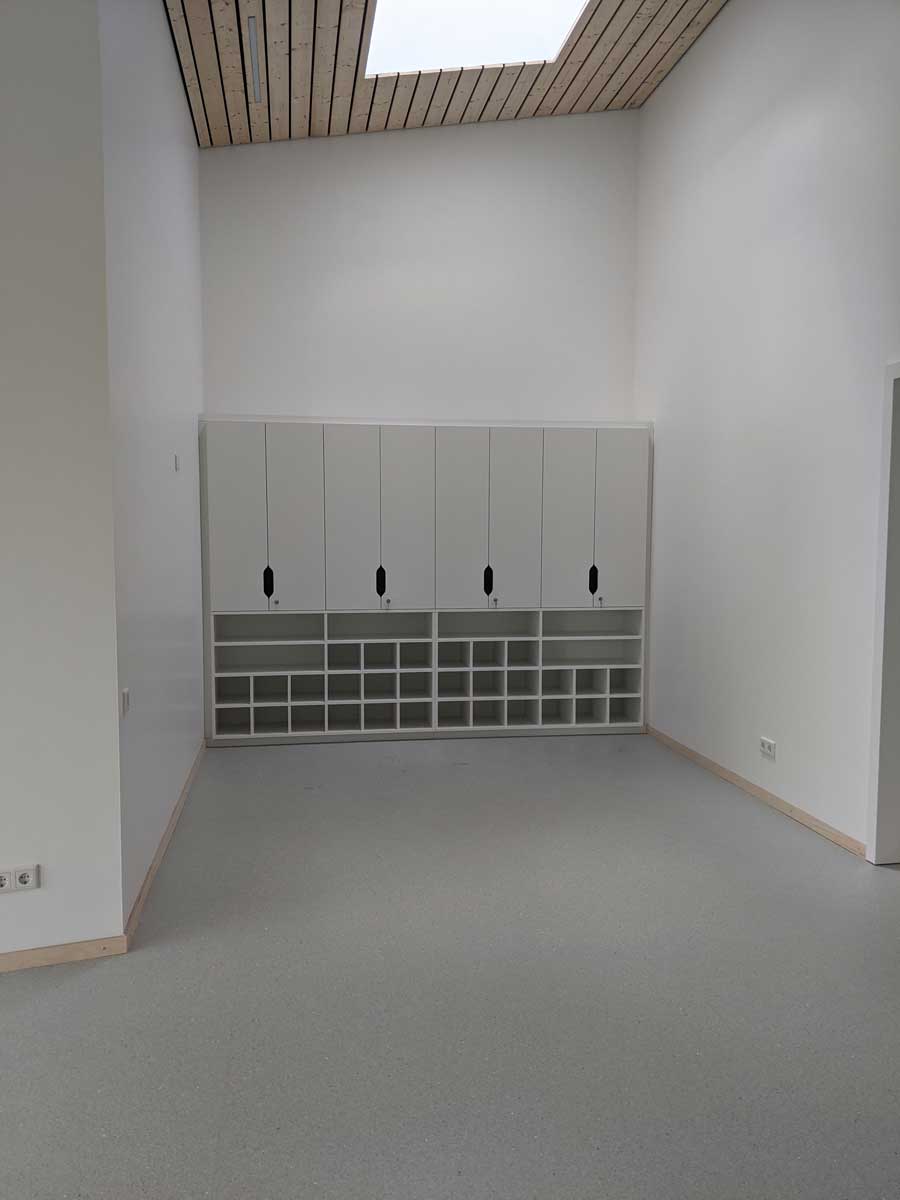Seit dem 16. August 2021 spielen, basteln, malen, singen und lernen 65 Kinder im Alter von 2 bis 6 Jahren in den großen Gruppen- und Nebenräumen. Die angrenzenden Schlafräume laden zum Schlafen und Ausruhen ein. Der große Turn- und Mehrzweckraum und der großzügige Flur bieten Platz zum Spielen, Toben, Turnen und Klettern. Im Differenzierungsraum gibt es zusätzliche Möglichkeiten für Therapien oder Kleingruppenangebote.