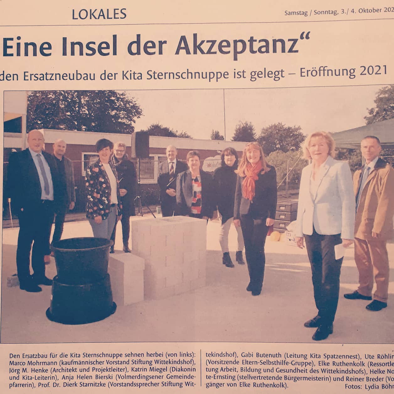 Am 2. Oktober 2020 wurde dann der Grundstein gelegt. Im Rahmen einer kleinen Feier auf der Baustelle, die musikalisch von den Sternschnuppen-Kindern begleitet wurde, sagte Elke Ruthenkolk, 1. Vorsitzende der ESG Bad Oeynhausen e. V.: „In einem Kindergarten sollen Kinder gefördert und zu starken Persönlichkeiten gemacht werden. Die Kindheit ist die lernintensivste Zeit im Leben und ein Kindergarten muss dafür die richtige Atmosphäre bieten.“ Das ist in den neuen Räumen jetzt noch besser möglich.
