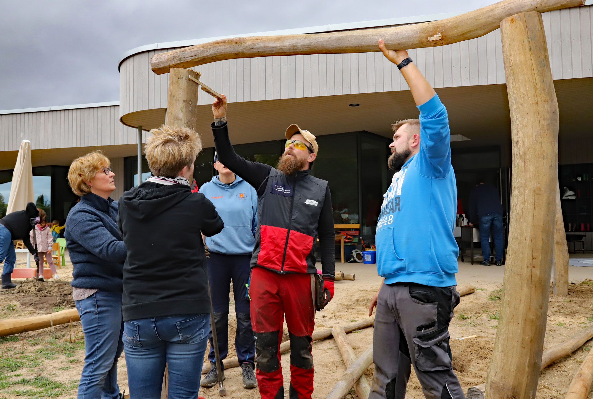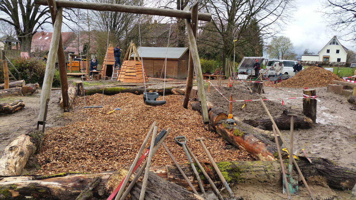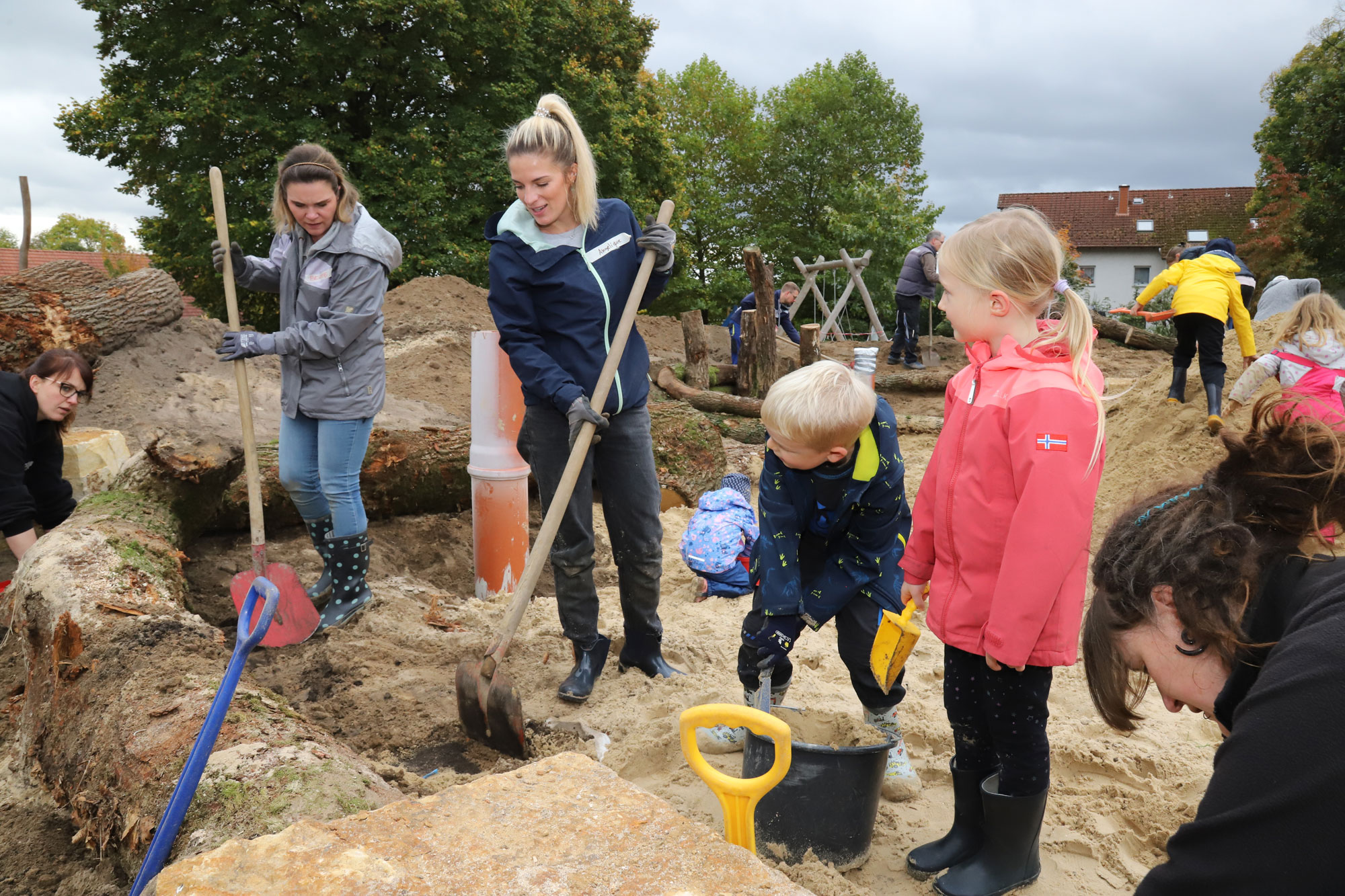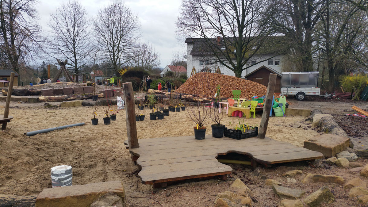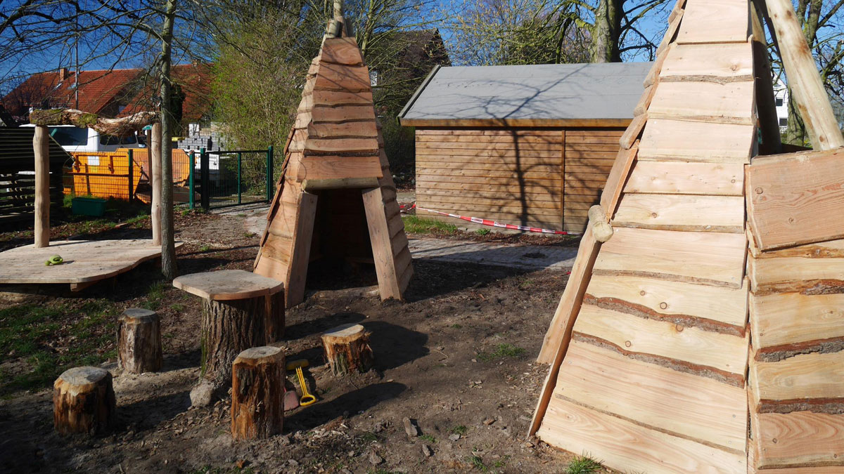 Die Sandberge sind einer Kletter- und Matschanlage gewichen, in den Hochbeeten wächst nun ein Kräutergarten und Tipis laden zum Spielen ein. Kurzum: Es tut sich was an der Kindertagesstätte Sternschnuppe. Regenschauer und Matsch haben Eltern, Kinder und das Kita-Team nämlich auch bei der zweiten Mitmach-Baustelle nicht davon abgehalten, das Außengelände weiter mitzugestalten.