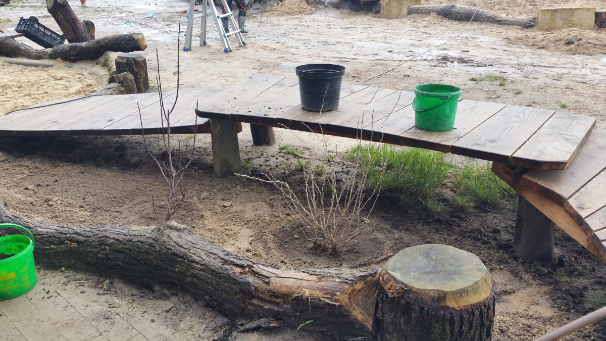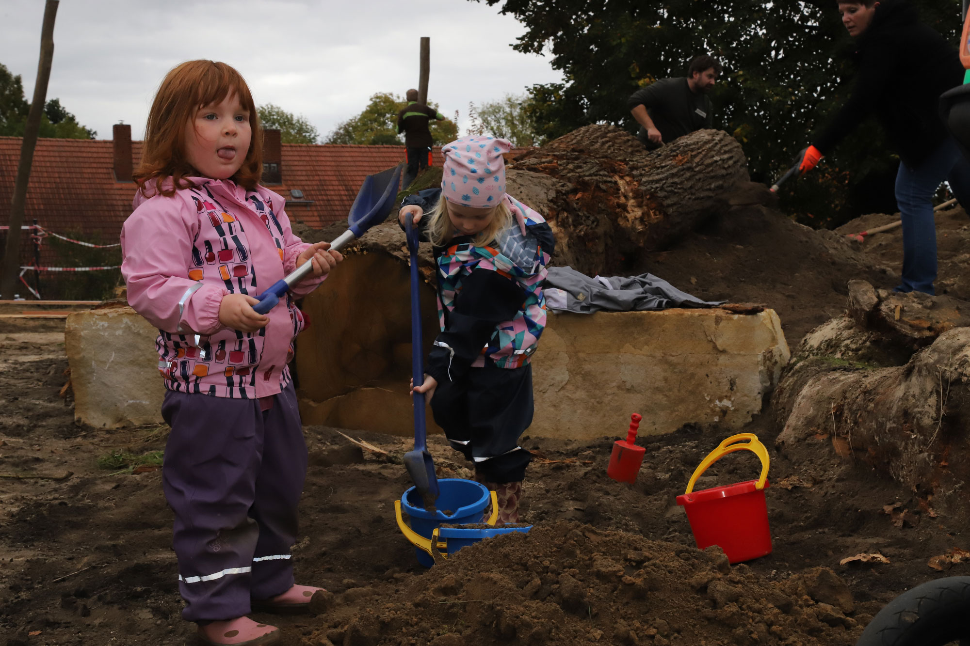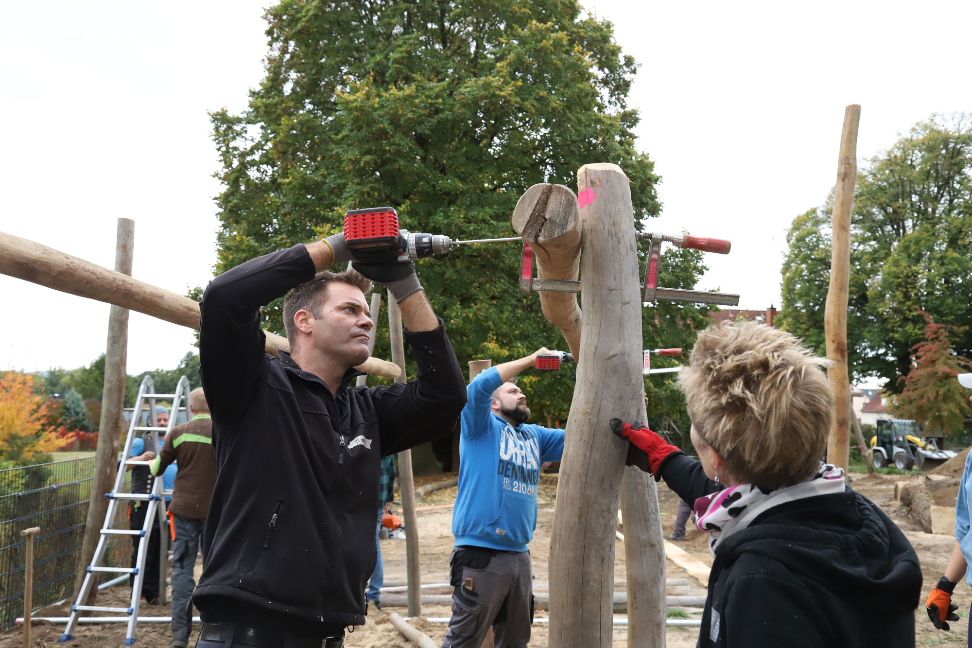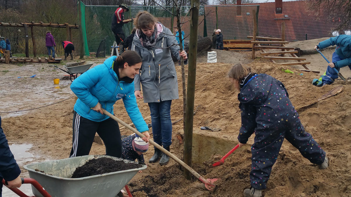 Die Sandberge sind einer Kletter- und Matschanlage gewichen, in den Hochbeeten wächst nun ein Kräutergarten und Tipis laden zum Spielen ein. Kurzum: Es tut sich was an der Kindertagesstätte Sternschnuppe. Regenschauer und Matsch haben Eltern, Kinder und das Kita-Team nämlich auch bei der zweiten Mitmach-Baustelle nicht davon abgehalten, das Außengelände weiter mitzugestalten.
